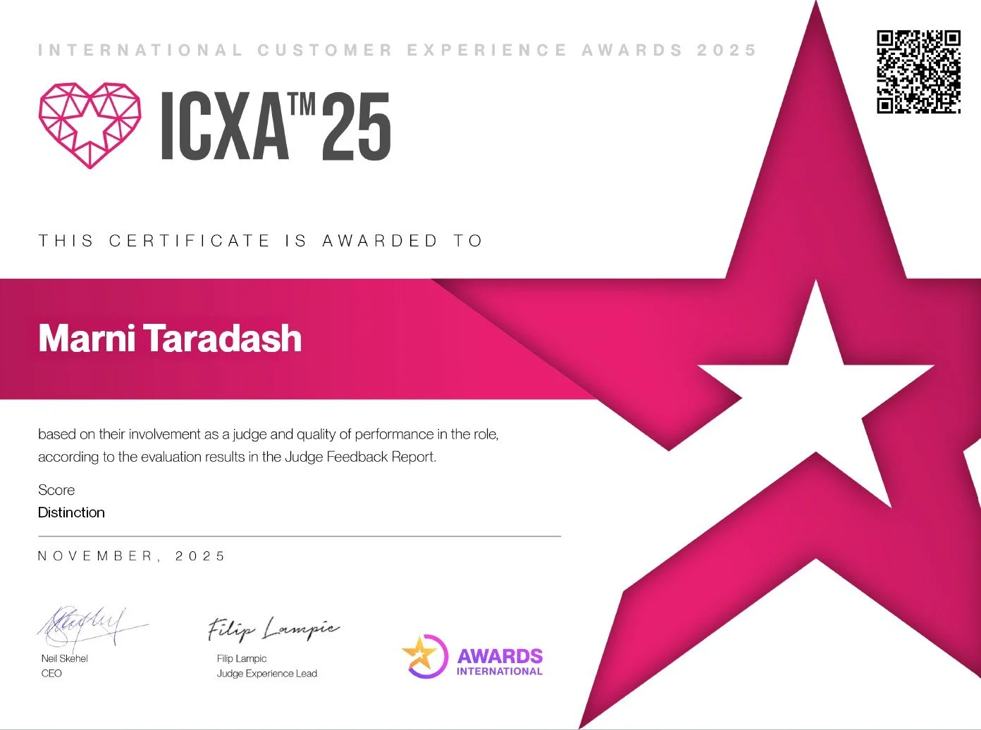 In 2025, I judged The International Customer Experience Awards (ICXA).